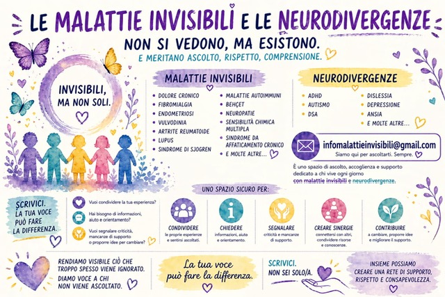 Non più invisibili nasce come spazio aperto, libero e condiviso, dedicato a tutti coloro che vivono, studiano o accompagnano queste condizioni: pazienti, familiari, associazioni, professionisti sanitari, ricercatori, comunicatori e cittadini sensibili.